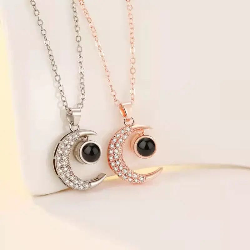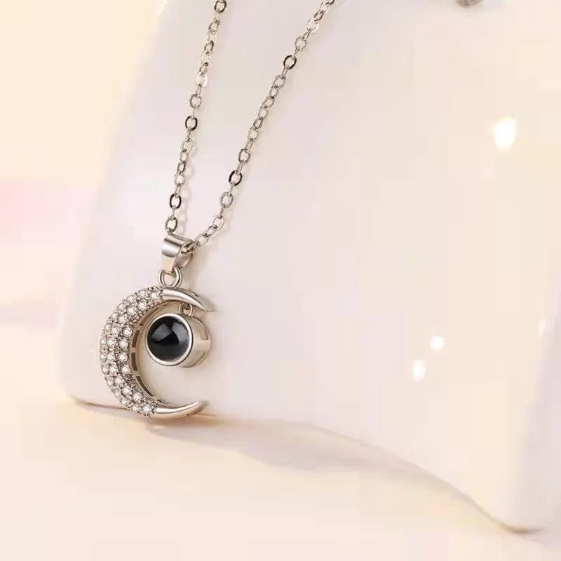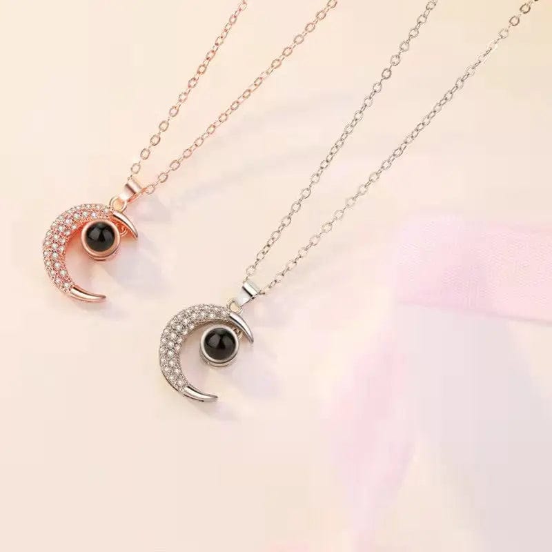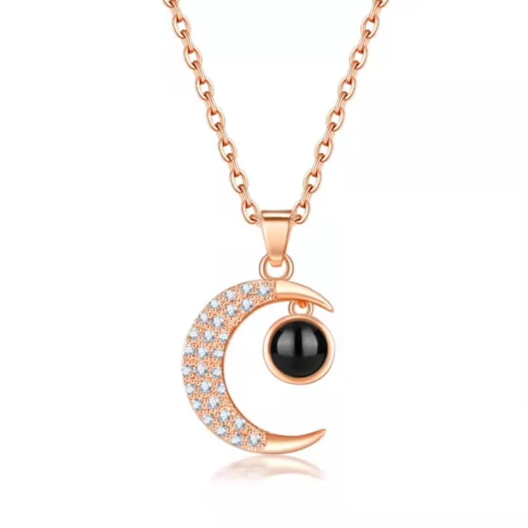 Custom Half Moon Zircon Hidden Photo Necklace