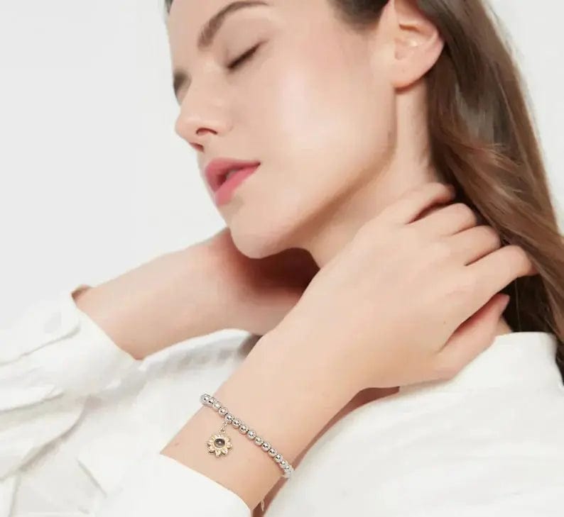 Custom Sunflower Hidden Photo Bracelet